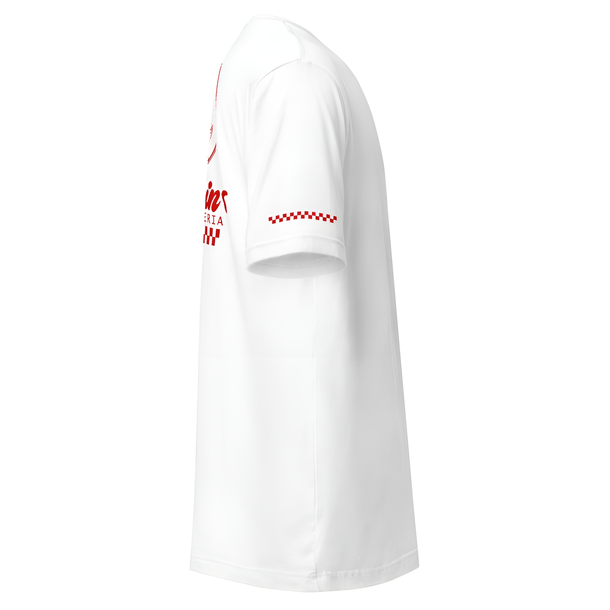 Not your average slice of merch. This tee is part white elephant gift, part social commentary, and 100% conversation starter. Designed like a vintage pizza joint uniform, it doubles as an artist statement for anyone tuned into the headlines and culture right now.