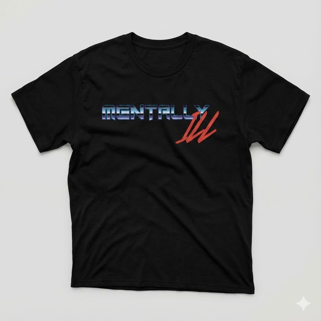 Turn heads with dark humor and bold retro vibes. Our “Mentally Ill” tee pairs unapologetic honesty with a throwback 80s font combo straight out of the neon era. Designed for those who wear their struggles—and their style—out loud, this shirt is more than just a statement, it’s an attitude.